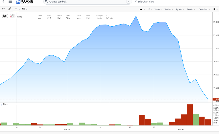 Source: https://stockanalysis.com/chart/UAE/ as of 3/7/2026