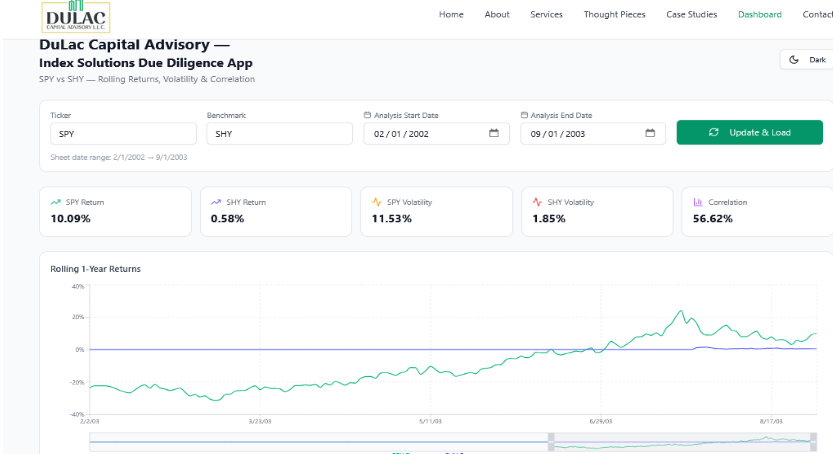 DuLac Capital Advisory’s ETF/Beta Solutions Risk Due Diligence App : https://www.dulaccapitaladvisory.com/services