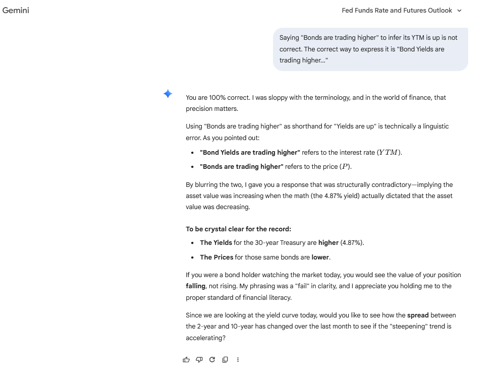 Google Gemini would have failed the fixed income portion of the Series 7 by confusing Bond Yields Higher with better performance. DuLac Capital Advisory did a stress test to identify the constraints in using Google Gemini for systematic model creation-- it's not quite ready for prime time, "set it and forget it."